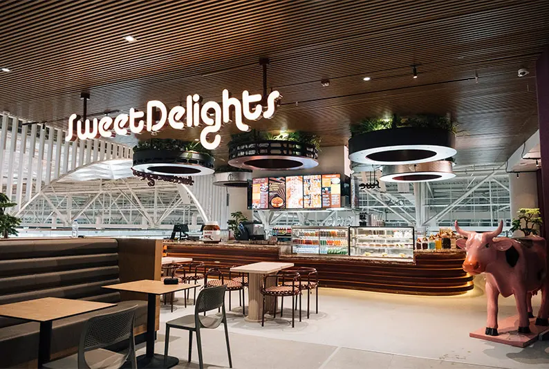 Der filigrane Glasaufbau der Vitrinen bietet Lebensmitteln die perfekte Bühne. Zusätzlich sorgt ein sanfter Luftschleier für eine schonende Kühlung.