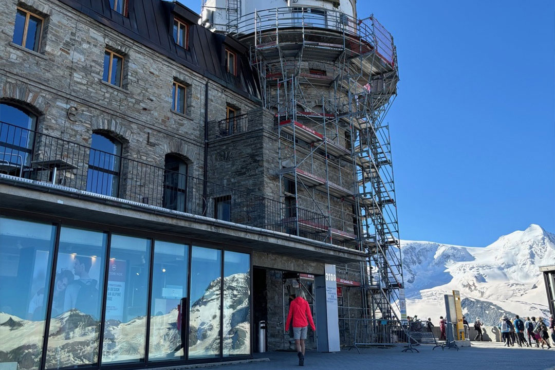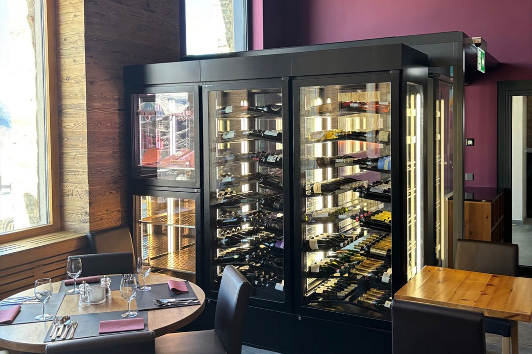 Insgesamt wurden sechs Sattelzüge Material erst über die Straße und dann per Zahnradbahn auf den Berg gebracht. Alle Vitrinen und Weinschränke wurden speziell für die Höhe über 3000 Meter konfiguriert, um dem veränderten Luftdruck standzuhalten.