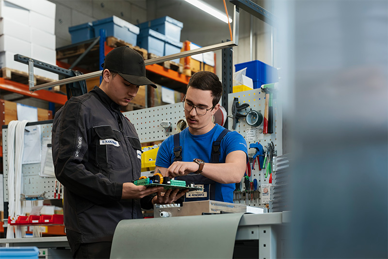 Während der Lehrzeit wirst du die gesamte Produktion kennenlernen: von der Blechfertigung bis hin zur Fertigteilmontage. Daneben wird dir in unserem individuell angepassten Prüfraum der Umgang mit Mess- und Prüfgeräten genau beigebracht. Da wir kleine, aber sehr empfindliche Anlagen für die Gastronomie oder auch Einzelhandelsketten bauen, brauchen wir kluge Köpfe, die sich für Entwicklungsarbeiten interessieren: Wie mache ich ein Kühlgerät effizienter, energiesparender etc.?