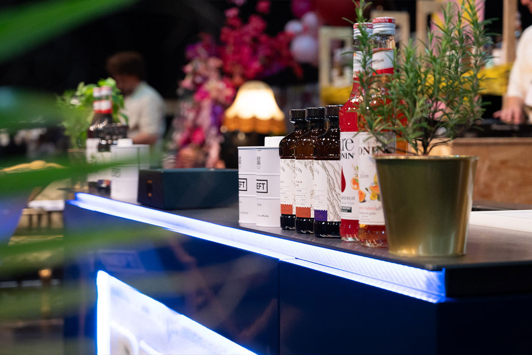 Ein besonderes Highlight: Unsere speziell angefertigte Designbar kam auf der Liquid.Stage eindrucksvoll zum Einsatz. Dort war unser Kollege Andreas Schäfer als Jurymitglied beim European Bartender Cup mit dabei.